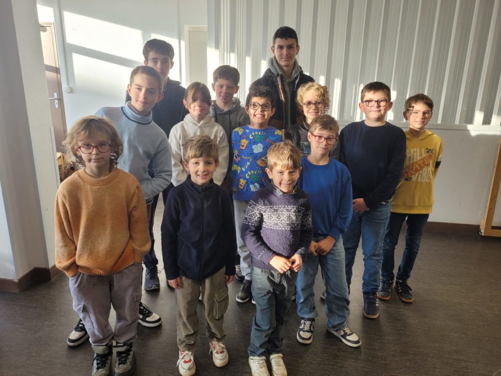 (Sur la photo ci-dessous, nos jeunes joueurs. Augustin est absent car exempt lors de la ronde du moment.)